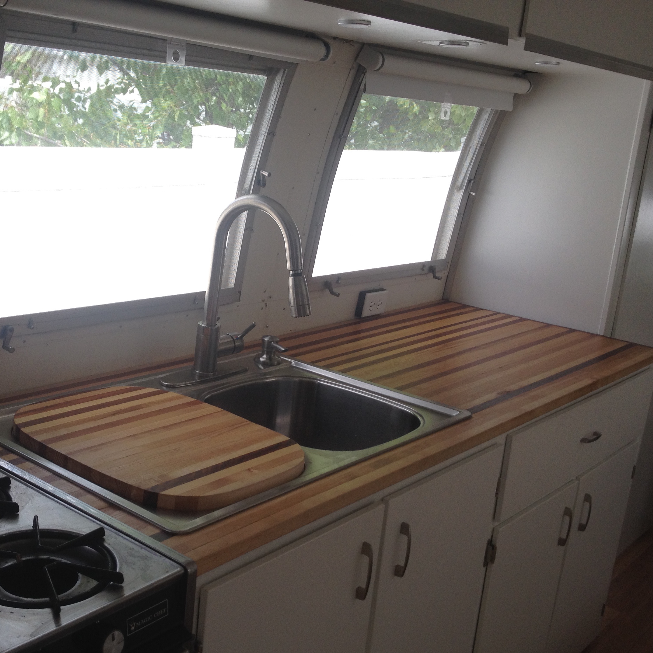 - Large Double Tub Sink with Hardwood Cutting Board Cover (that matches counter)