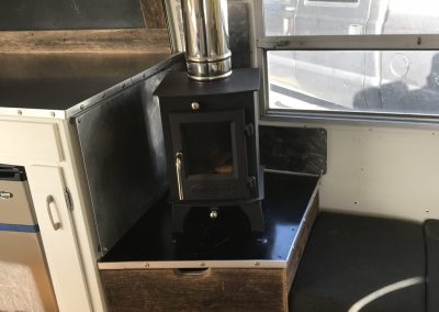 - Dwarf Model S Tiny Wood Stove. 10k BTU. 3” flue kit with removable vent cap for traveling.